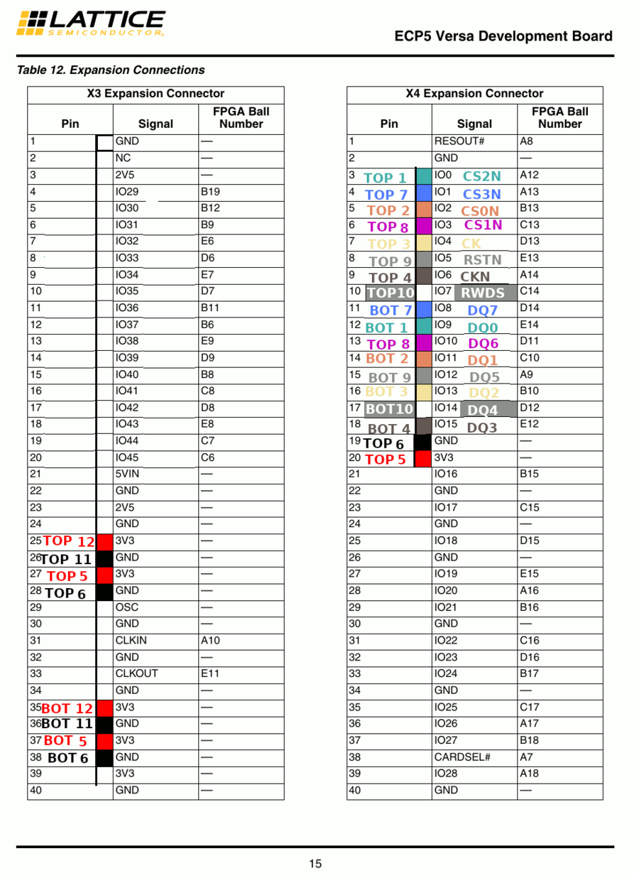 | 18 IO15 | E12 | (DQ3) | Brown |
